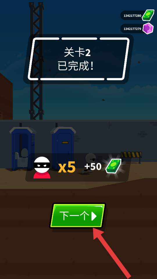 4、关卡完成后,获取金币奖励,点击【下一个】挑战后续关卡。