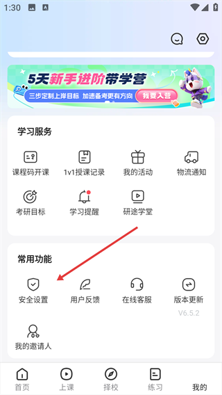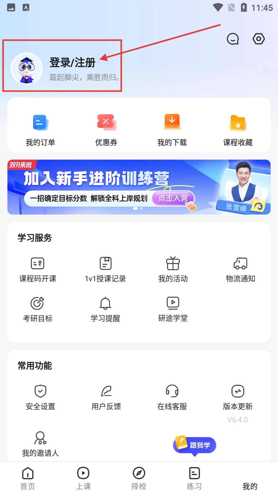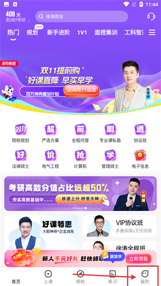 1、在考研APP首页,点击底部导航栏的【我的】选项,可进入个人中心界面。