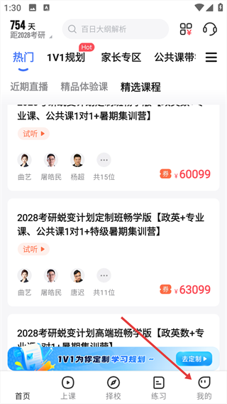 2、包含免费试听课程、名师直播课程与1v1定制课程,提供多样化学习选择,助力考生系统学习考研知识,攻克重点难点。