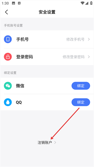 3、选择【注销账户】选项,跳转至注销风险提示页面。