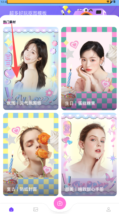 《龙年美图》界面以粉色为主,布局活泼。核心功能超多好玩抠图模板集中展示多种风格化素材。软件特色在于提供丰富主题模板,覆盖生日、复古、甜美等场景,每款模板均精心设计装饰元素与文字样式。其优势是模板风格多样、视觉精美,用户可快速套用生成个性化图片,满足社交分享与日常修图需求。