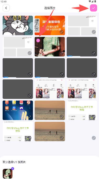 2、进入模板编辑页后,从相册中选择至少一张人物照片进行导入。