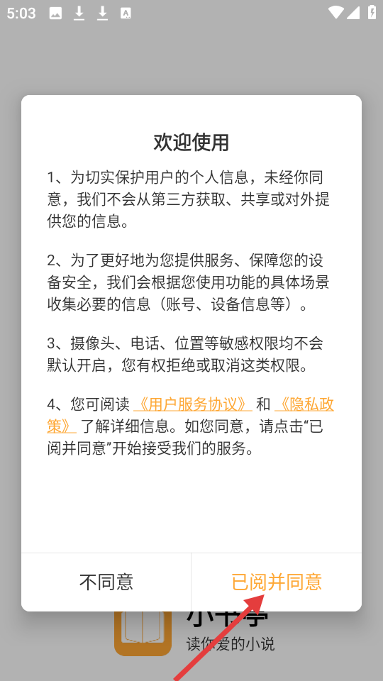 1、首次使用需阅读【欢迎使用】的四条说明,点击【已阅并同意】进入应用。