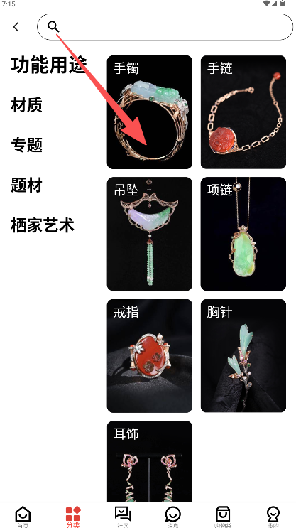 1、在分类页,浏览饰品分类并选择目标品类进入商品列表。