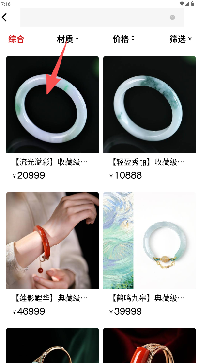 2、在材质商品列表页筛选,通过下拉选择喜欢的商品特定类型。