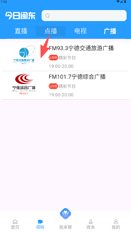 2、在广播列表中找到目标频道如“宁德交通旅游广播”。