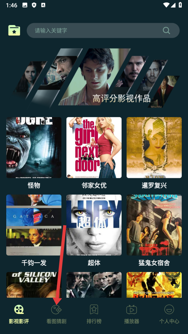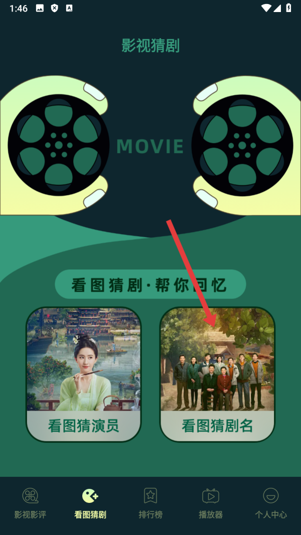 1、点击底部【看图猜剧】,进入影视猜剧页面。