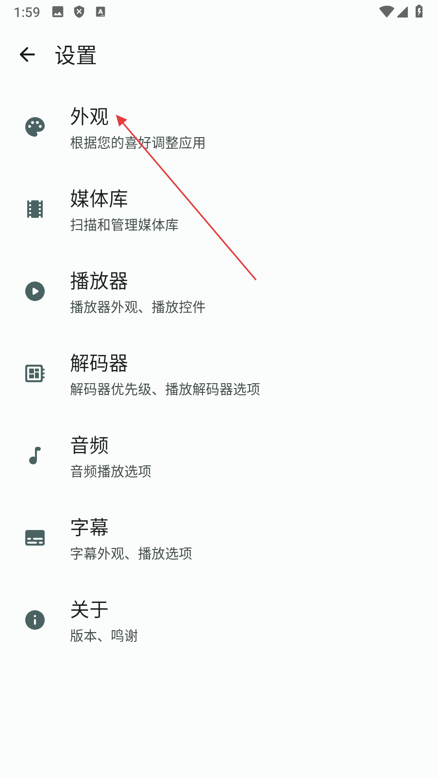 2、在设置页面,点击【外观】,进入外观设置页面。