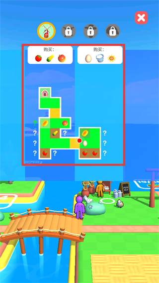 1、在农场规划界面,可购买番茄种子等,合理布局农场土地,规划农作物种植区域。
