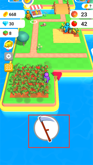 4、番茄成熟后,使用镰刀进行收割,获取番茄资源。