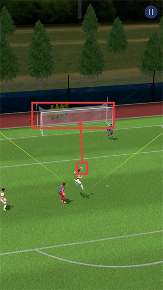 3、进攻时瞄准【球门】,把握时机射门,将球送入球门,争取比赛得分。