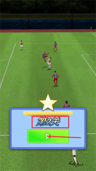 4、完成关卡后,点击【第2关】的绿色按钮,进入下一关继续足球挑战,逐步解锁更多关卡。