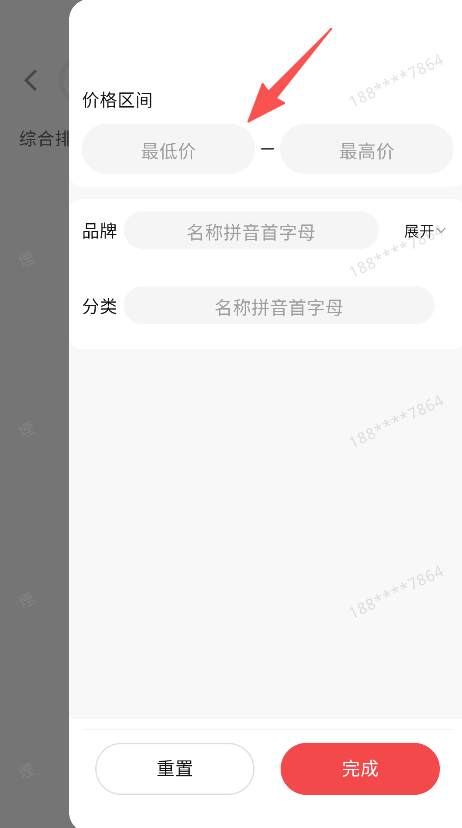 2、设置价格区间、品牌、分类等筛选条件,点击完成,精准找到商品。