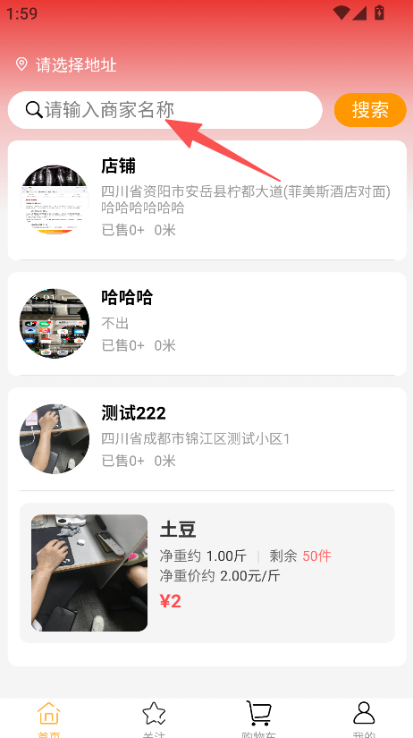 1、具备商家搜索功能,用户输入商家名称即可查找对应店铺,满足本地购物的商家定位需求,开启本地购物流程。