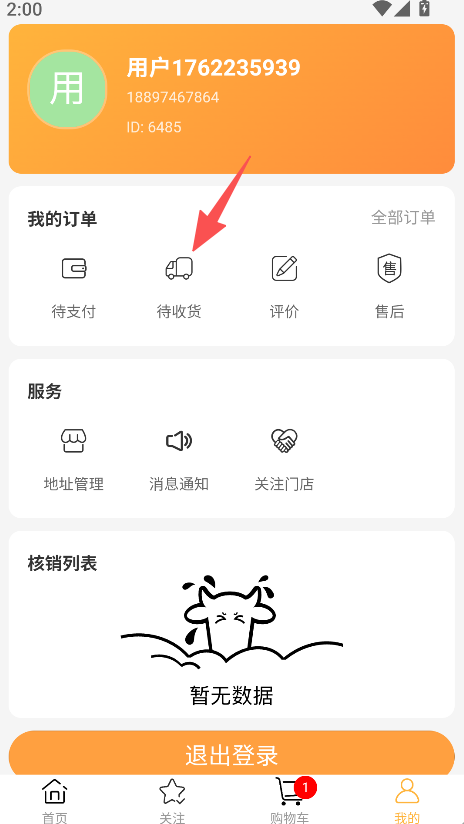 3、进入我的,查看待收货订单,跟踪订单状态。