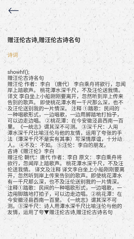 2、界面简洁无冗余干扰,搭配契合诗意的视觉设计,营造沉浸式阅读氛围,凸显诗词本身美感。
