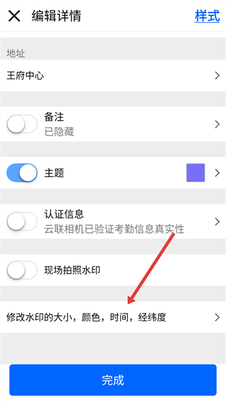 3、接着我们选择【修改水印的大小-颜色-时间-经纬度】选项,进入样式设置界面呢。