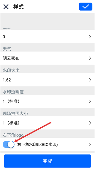 4、在样式页面,找到【右下角水印】的开关,将其关闭,就能成功去掉右下角图标啦。