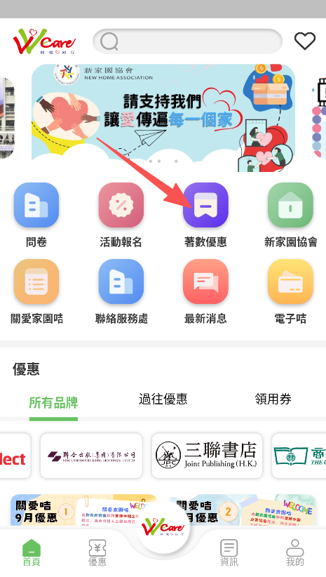 《關愛家園咭》是一款专注社区服务与优惠信息的软件,设有问卷、活动报名、着数优惠等板块,着数优惠提供超市、电商等多领域消费折扣,还有丰富优惠券分类。软件功能多元,助力用户参与社区活动、获取消费优惠,是社区服务与优惠获取的实用工具。