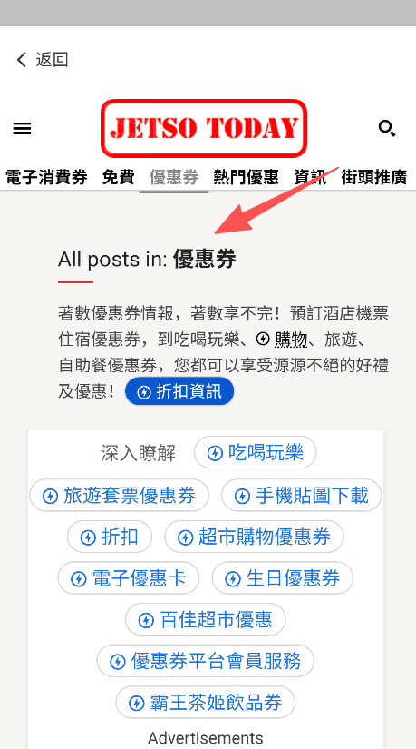 2、进入优惠券板块,浏览不同类型优惠券分类。