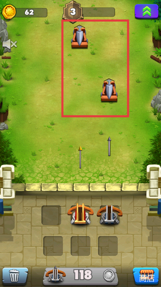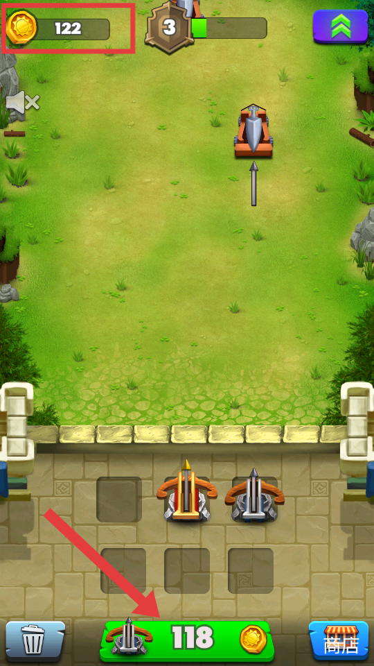 2、通过战斗获取金币,积累到一定数量后,点击下方绿色按钮可购买攻城器械。