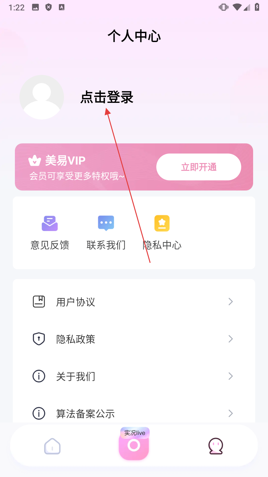 2、在个人中心页面,点击【点击登录】,进入登录信息填写页面。