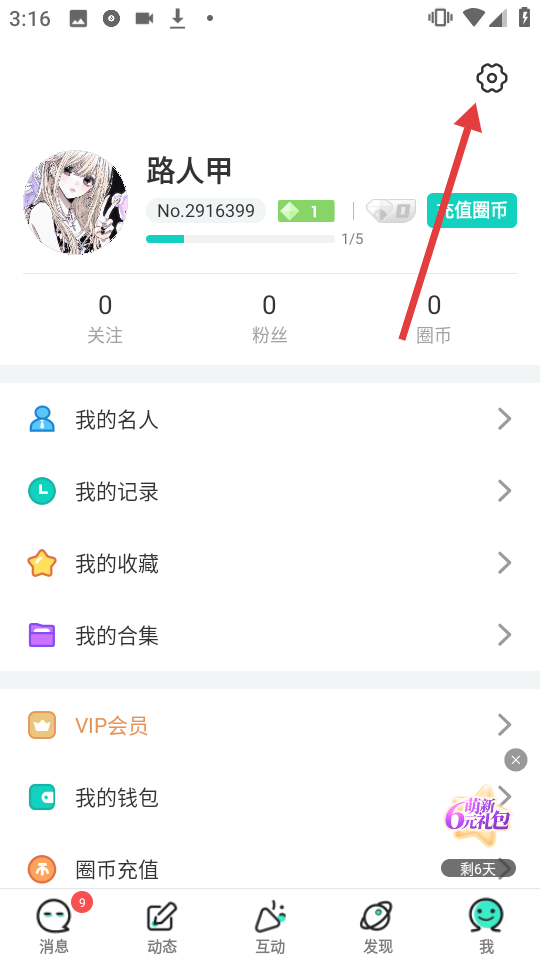 1、在“我”的页面点击右上角齿轮状的【设置】图标。