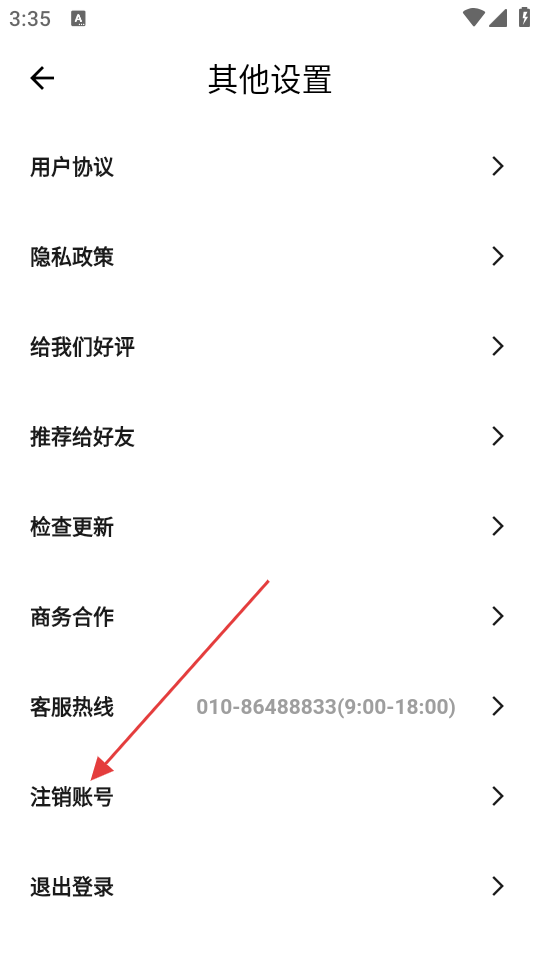 3、在其他设置页面点击【注销账号】选项,进入账号注销确认流程。