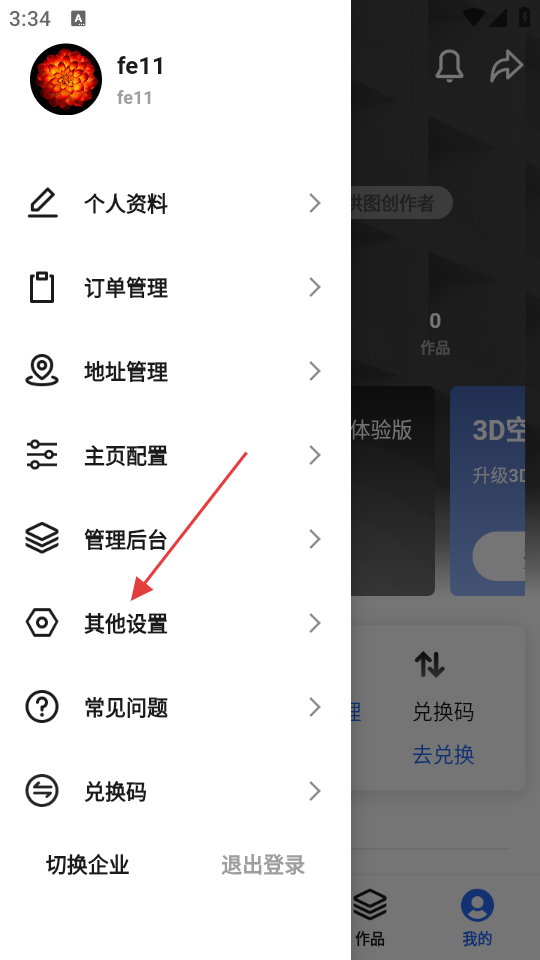 2、在侧边栏菜单中点击【其他设置】选项,进入其他设置页面,可查看用户协议、隐私政策等设置项。