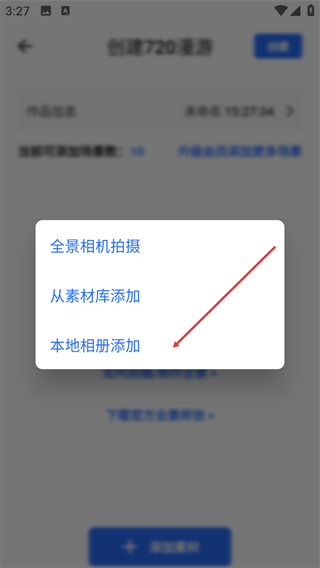 3、在弹出的素材添加选项中,选择【本地相册添加】方式。