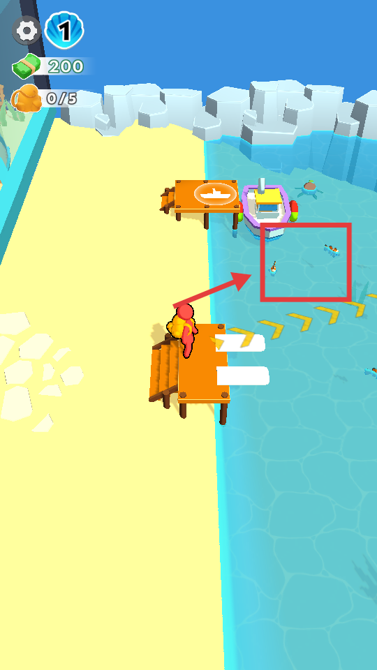 3、前往码头区域,捕捞水中的鱼类。
