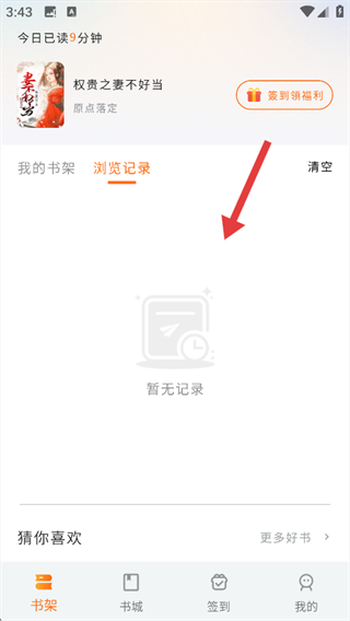 2、切换至【浏览记录】标签,查看过往阅读足迹。