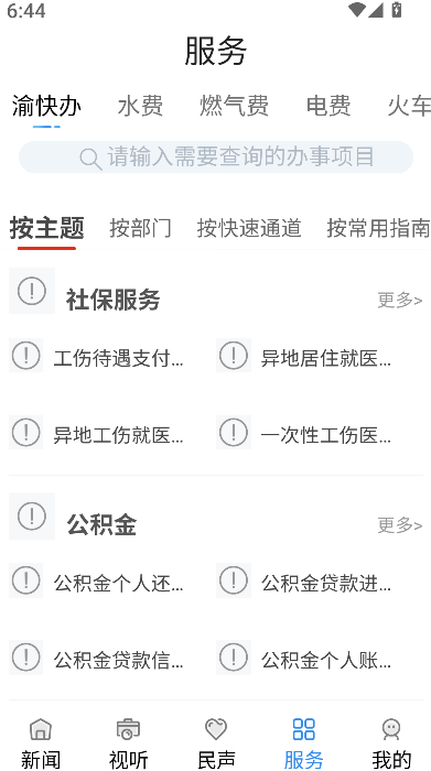 4、点击“服务”板块,可查看水费、电费、燃气费等生活缴费入口,根据实际情况选择查询或在线缴纳。