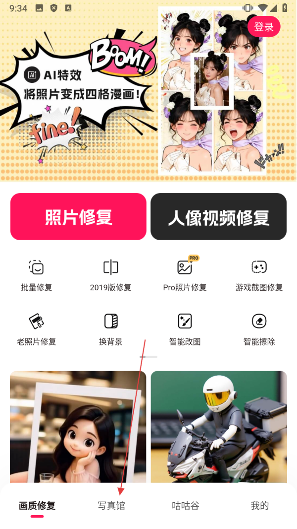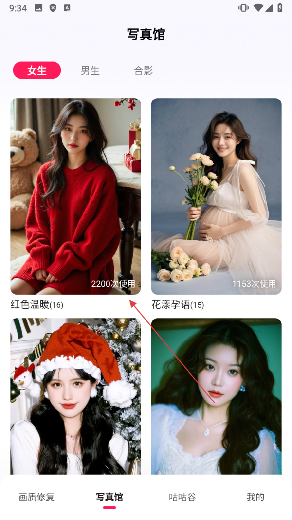 1、点击底部【写真馆】,进入写真风格选择页面。