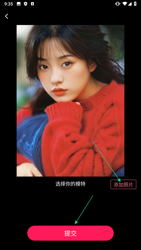 4、在页面中【添加照片】后,点击【提交】,即可完成写真生成操作。