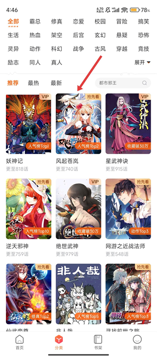 2、进入分类页面,我们可以选择作品【风起苍岚】哦。