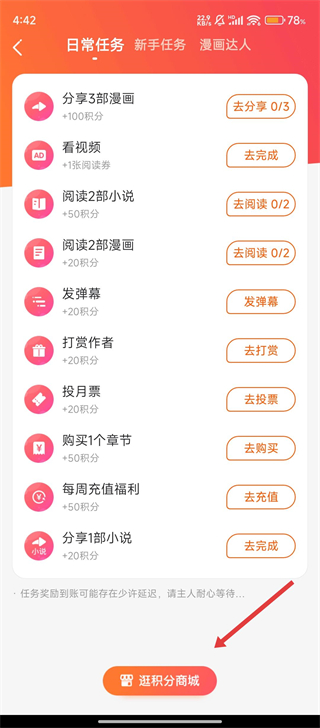 2、在任务中心完成任务领积分后,点击【逛积分商城】进入兑换页面呢。