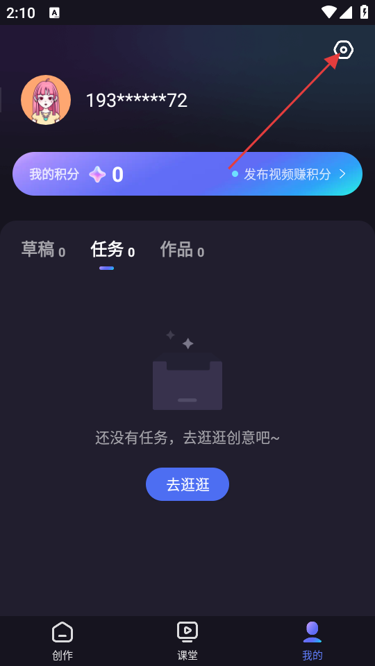 2、在个人中心页面中,点击右上角的设置图标,可进入账号管理相关设置界面。