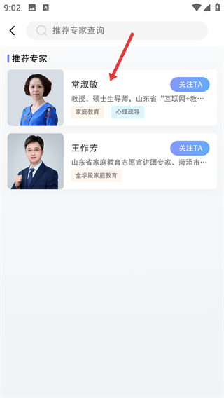 3、之后点击【常淑敏】教授的卡片,就能看到她的详细介绍和相关领域,为选择养教课程做准备啦。