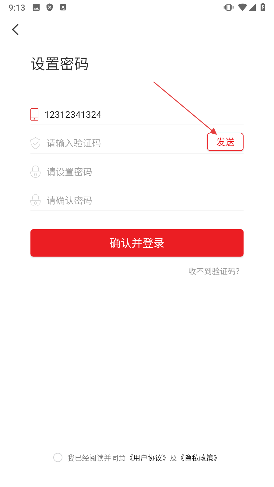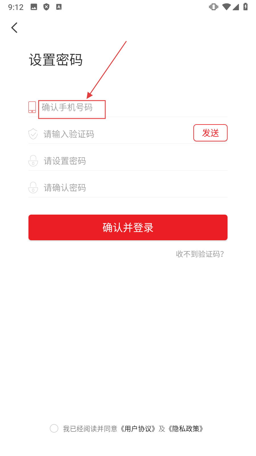 2、在页面中【填写手机号码】,准备获取验证码。