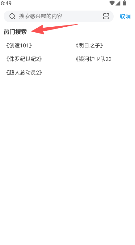 1、进入软件,使用搜索功能,查看热门搜索内容。