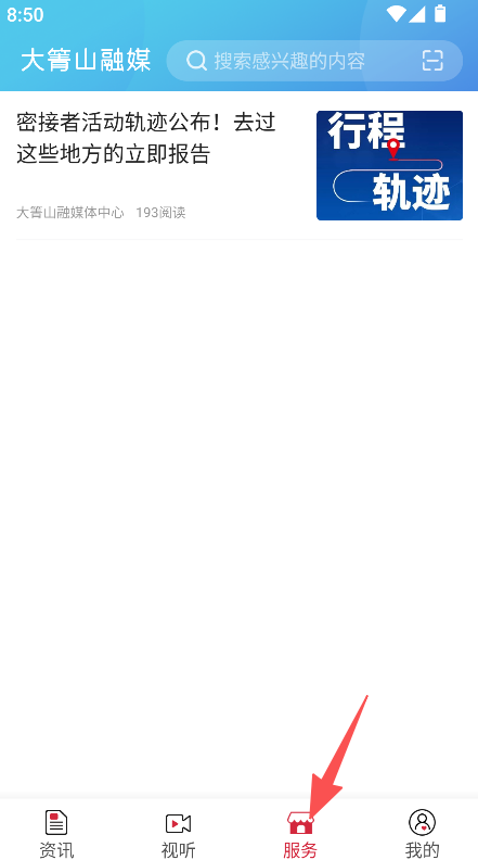 《大箐山融媒》是一款本地融媒体软件,提供资讯、视听、服务等功能,支持搜索感兴趣内容(热门搜索涵盖综艺、影视),可查看本地资讯(如密接者活动轨迹),助力用户获取本地新闻与服务,是本地信息获取与服务的实用工具,让本地资讯了解更便捷高效。