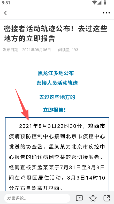2、支持资讯浏览功能,本地资讯(如密接者轨迹)详情阅读,用户深入了解本地新闻,信息掌握更全面。