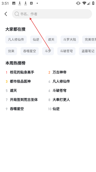 2、在【书名、作者】搜索框中输入要查找的小说名称或作者。