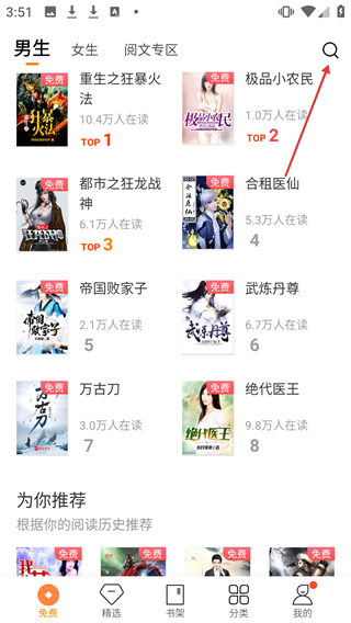 1、点击界面右上角的【搜索】图标,进入搜索页面。