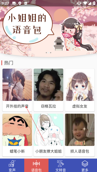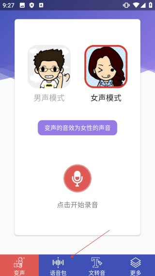 1、在软件界面点击【语音包】,进入语音包选择界面,开始语音包使用操作。