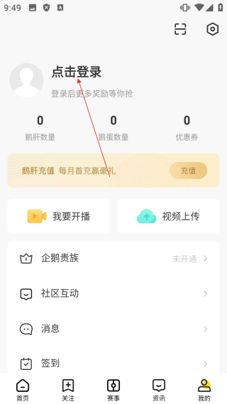 2、进入个人界面后,点击【点击登录】,进入登录信息填写界面。