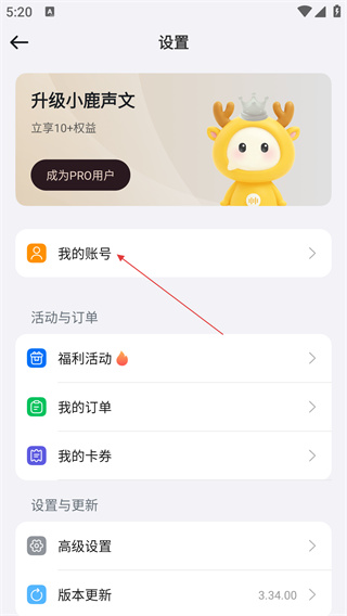 3、在设置页面,点击【我的账号】选项,进入我的账号页面。