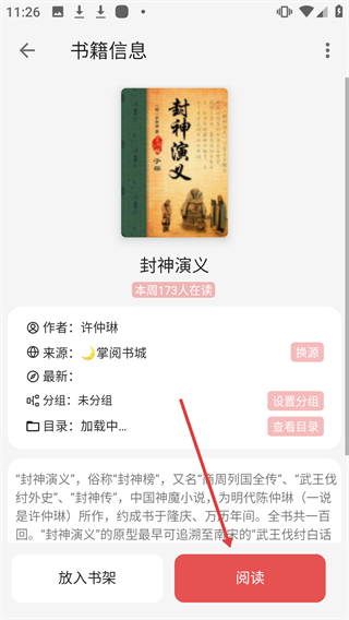4、进入书籍信息页面后,点击【阅读】按钮即可开始阅读。