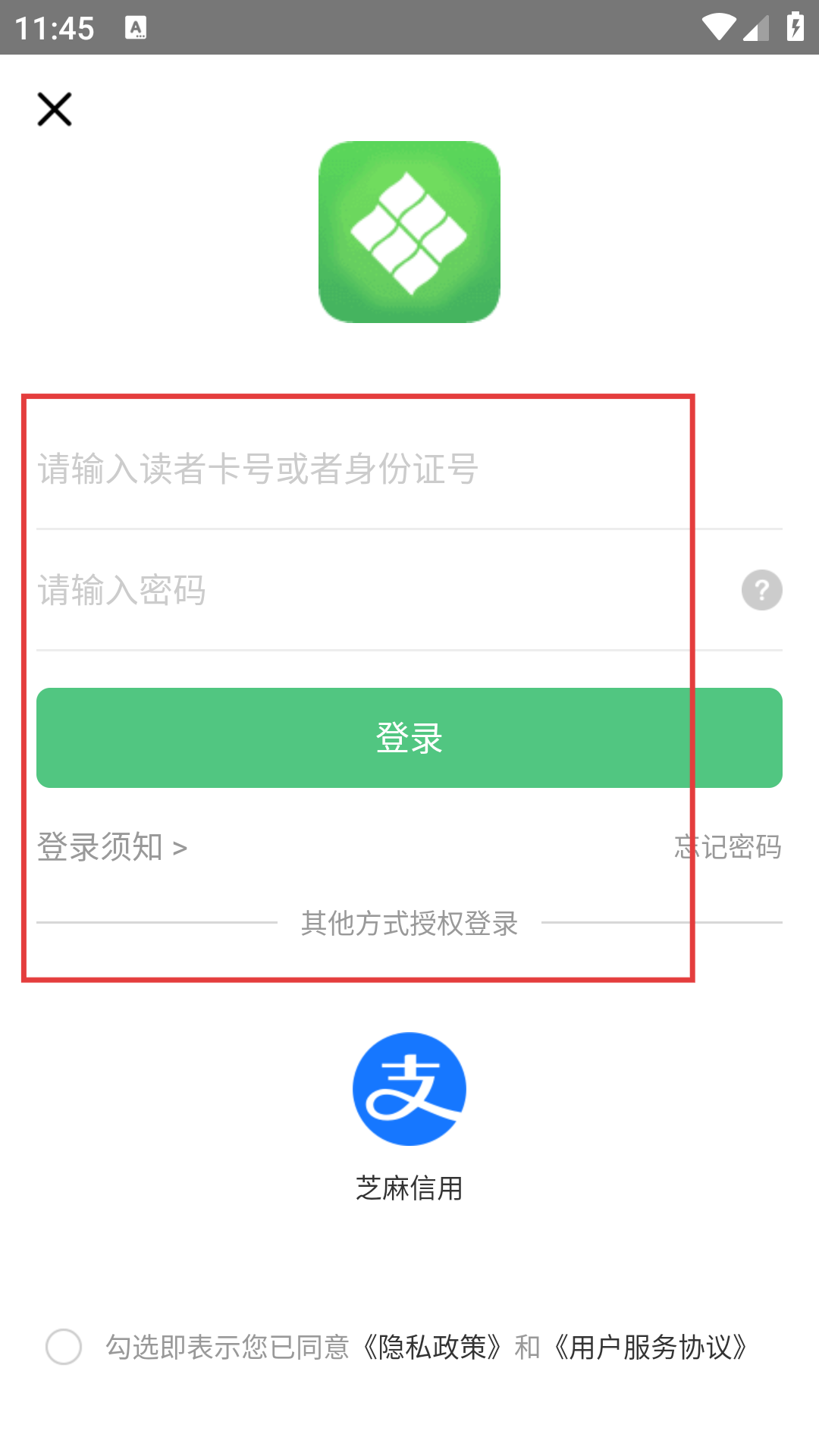 4、在登录界面,输入读者卡号或身份证号和密码,即可完成登录操作,也可选择其他方式授权登录。